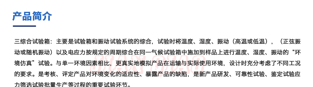 用途:三綜合試驗箱:主要是試驗箱和振動試驗系統的綜合,試驗時將溫度、濕度、振動(高溫或低溫),(正弦振動或隨機振動)以及電應力按規定的周期綜合在同一氣候試驗箱中施加到