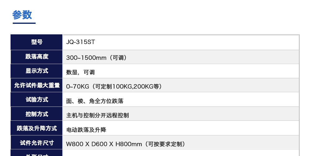 用途:動力電池跌落試驗機主要用于評估各類鋰電池及鎳電池等其他一次電池,二次電池,蓄電池單體或電池組自由跌落(例如從臺面頂部)的安全性能。電池以不爆炸不起火為合格。